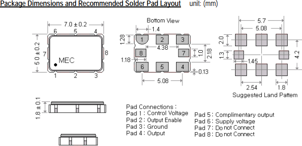 - 电压控制石英晶体振荡器具有适合于移动通信设备用途的高稳定的频率温度特性.为对应低电源电压的产品.(可对应DC+1.8V±0.1V to+3.2V±0.1V )高度:高1.0 mm,体积:0.007 cm3,重量:0.024g,小型,轻型.低消耗电流,表面贴片型产品.(可对应回流焊)无铅产品.满足无铅焊接的回流温度曲线要求.