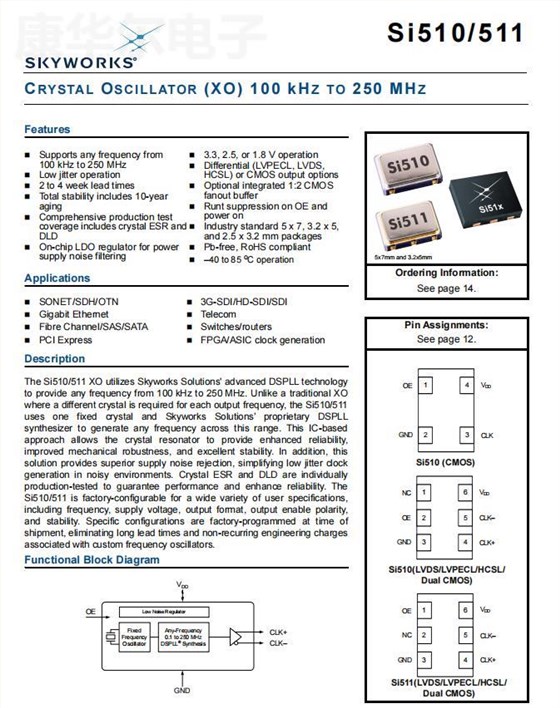 | 510KCA125M000BAG | Skyworks晶振 | Si510 | 125MHz | CMOS | 1.8V |
