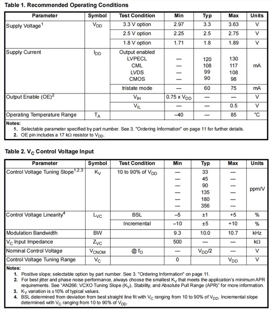 | Control Voltage Tuning Slope1,2,3 | KV | 10 to 90% of VDD |
