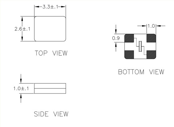 6G放大器晶振,603-25-150JA4C8,IDT艾迪悌晶振 尺寸图