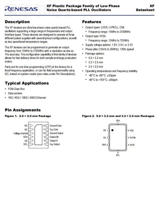 | XFP236156.250000I | Renesas | XFP | 156.25MHz | LVPECL | 3.3V | ±25ppm |